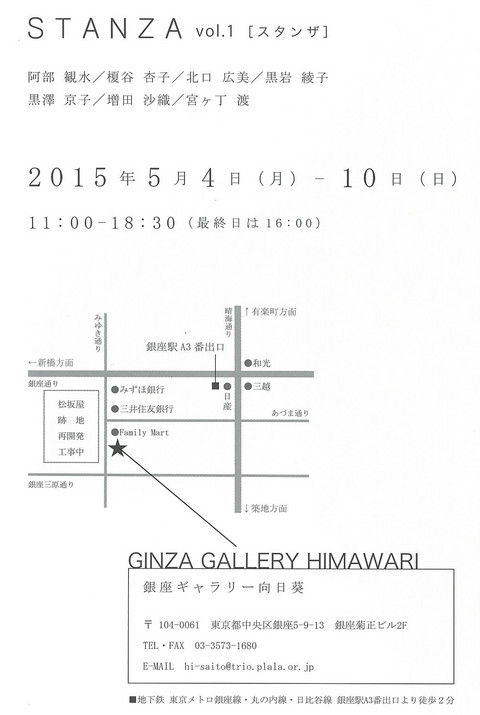 会場:銀座ギャラリー向日葵 〒104-0061 中央区銀座5-9-13 菊正ビル2F