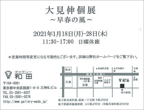 【展覧会情報】大見 伸 個展『〜早春の風〜』(ギャラリー和田/銀座)