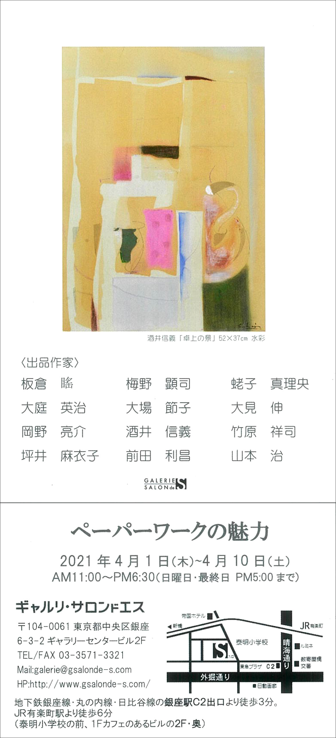 【展覧会情報】大見 伸 グループ展「ペーパーワークの魅力」(ギャルリ・サロンドエス/銀座)