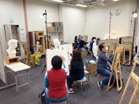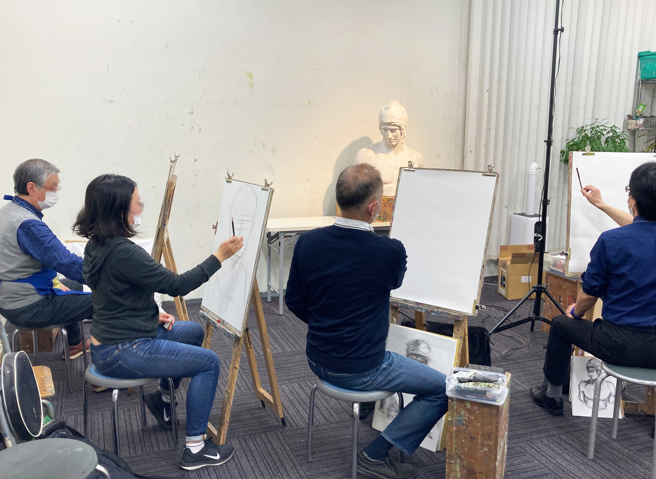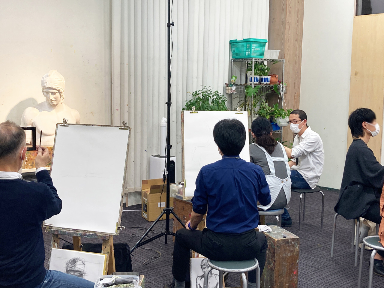 このクラスは写実絵画を追求するコースで、初日は石膏デッサンからスタート。
