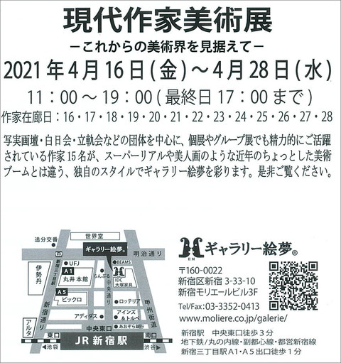 【展覧会情報】遊馬賢一 大見伸 グループ展『現代作家美術展』(ギャラリー絵夢/新宿)