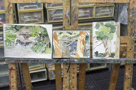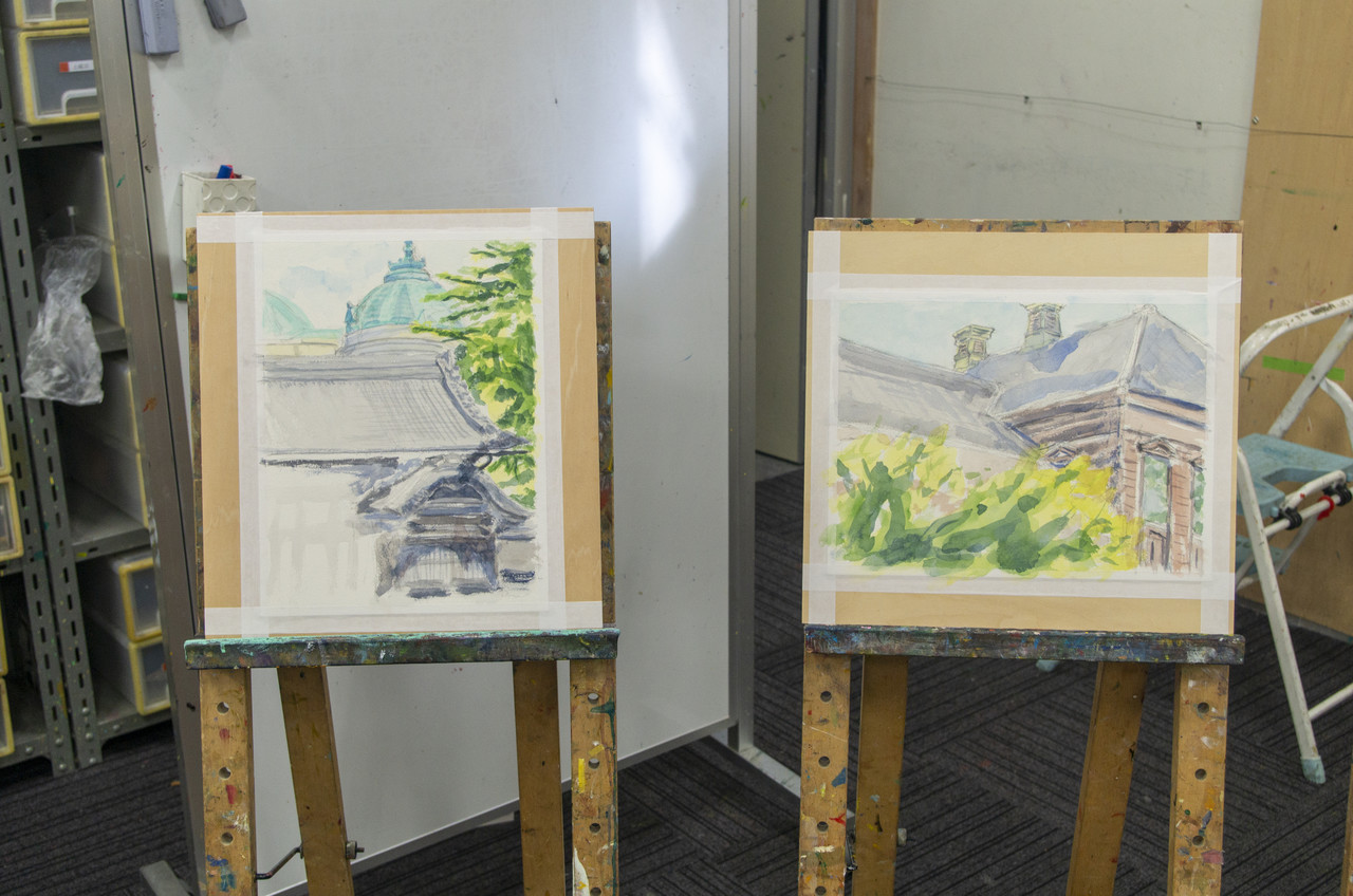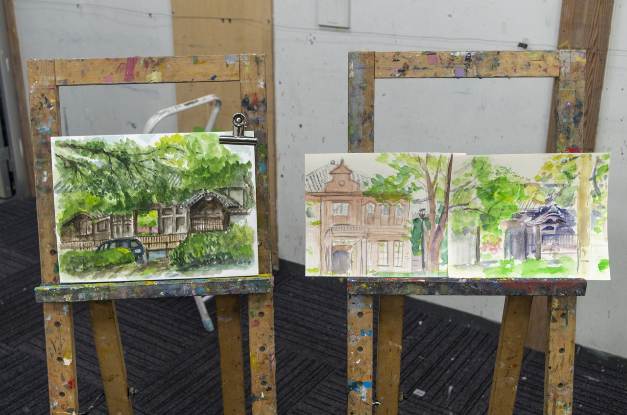 それぞれが見た風景と建物のスケッチをアトリエに持ち込み、講評会へ。