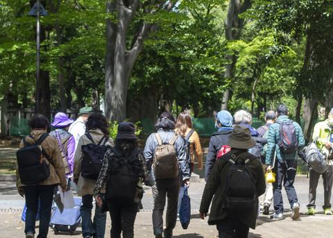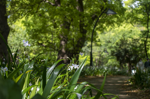 この日は前日から続く雨の予報を覆し、晴天。上野公園は春さなかの新緑が輝き、