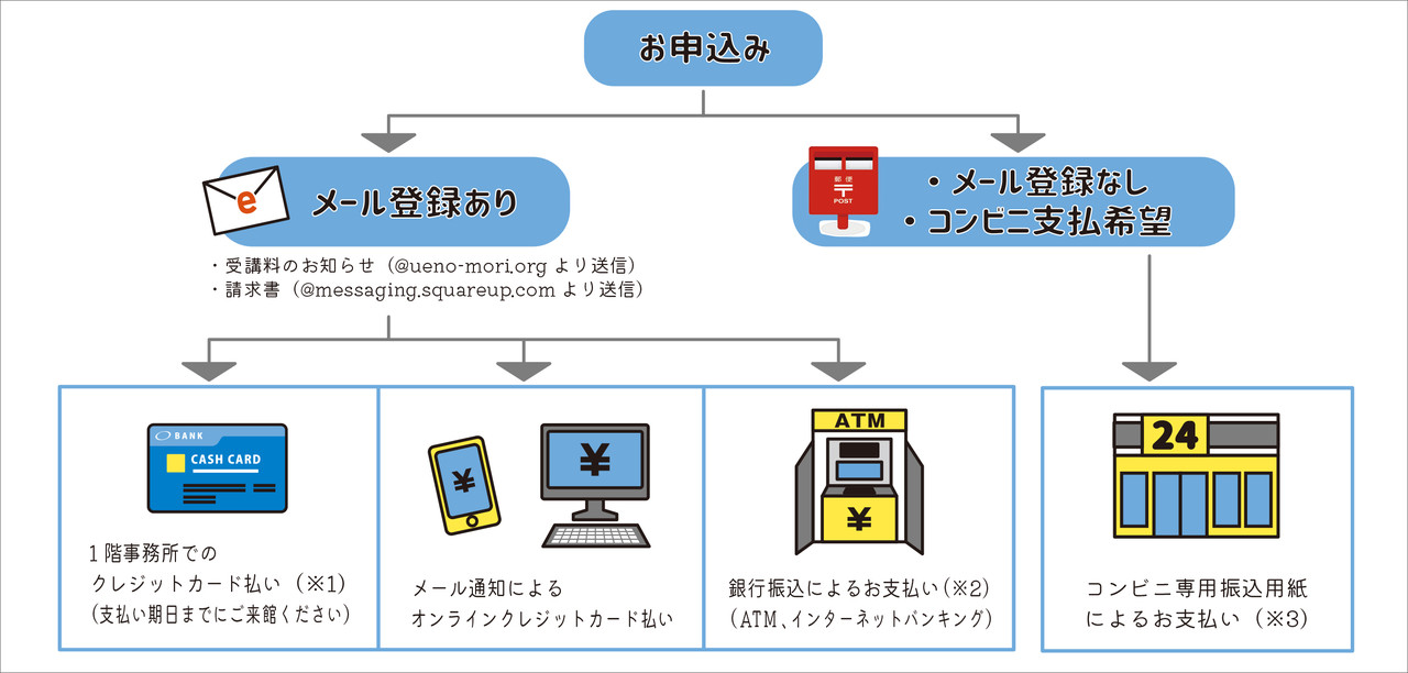 - 2022年4月より受講料のお知らせを郵送する場合は、1件につき手数料¥300を頂戴いたします。