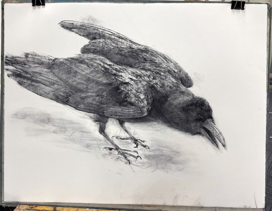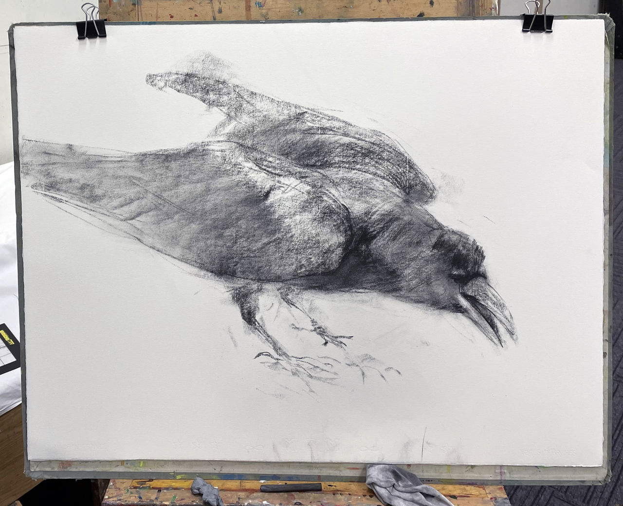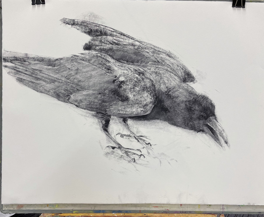 2021年後期単発講座の表紙はカラスの剥製の木炭デッサンでした。