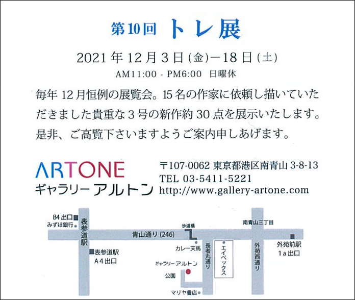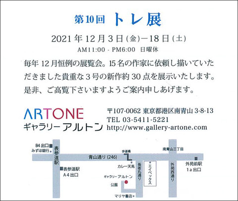【展覧会情報】 中尾直貴 グループ展『第10回 トレ展』(ギャラリーアルトン/青山)