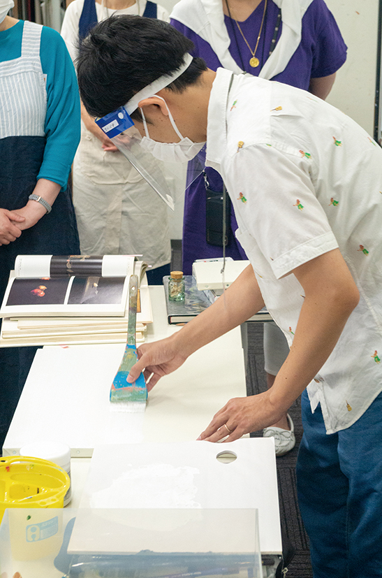 Aクラスは、表現のブラッシュアップとして絵画の組成を学びます。感覚と論理と実技を並列させます。具体的には、ドローイングは身体のオートマティスム、デッサンは論理的思考、色、形、物質としてのマチエール、技法、インスタレーション。つくるために必要な要素を分解し、それぞれを見直してみます。絵画をつくるために必要な知っておかなければならないことです。それらを取捨選択し、組み合わせて絵画をつくるのです。