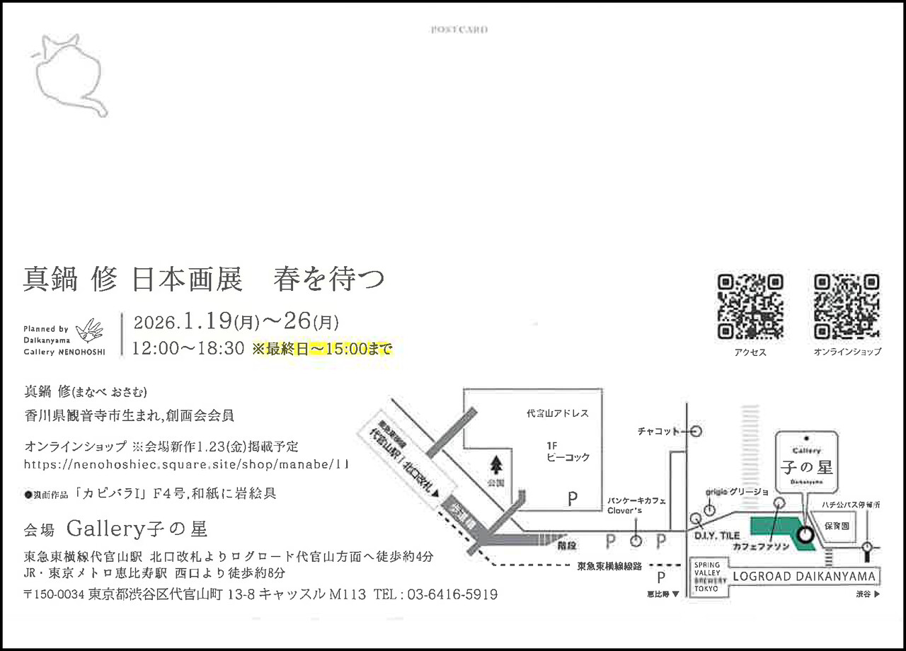 【展覧会情報】個展 真鍋修 日本画展 春を待つ (Gallery子の星/代官山)