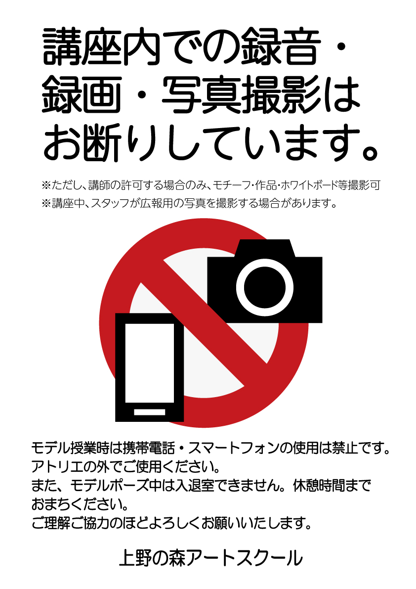 ただし、講師の許可する場合のみ、モチーフ・作品・ホワイトボード等の撮影が可能です。