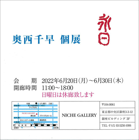 【展覧会情報】奥西千早 個展(NICHE GALLERY/銀座)