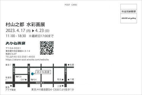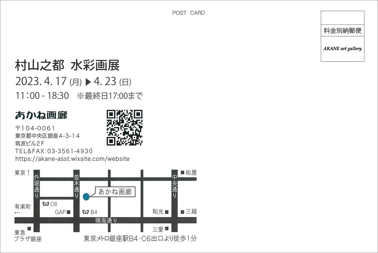 【展覧会情報】村山之都 水彩画展(あかね画廊/銀座)