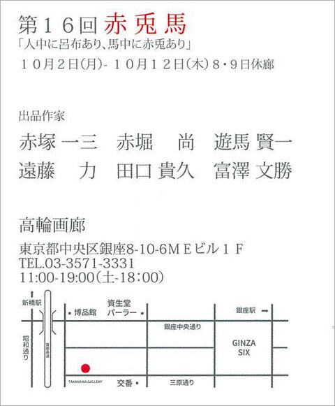 【展覧会情報】遊馬賢一 グループ展「第16回 赤兎馬」(高輪画廊/銀座)