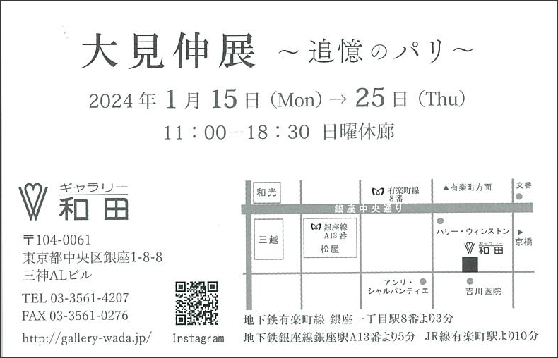 【展覧会情報】大見 伸 個展『大見伸 展〜追憶のパリ〜』(ギャラリー和田/銀座)