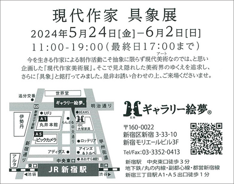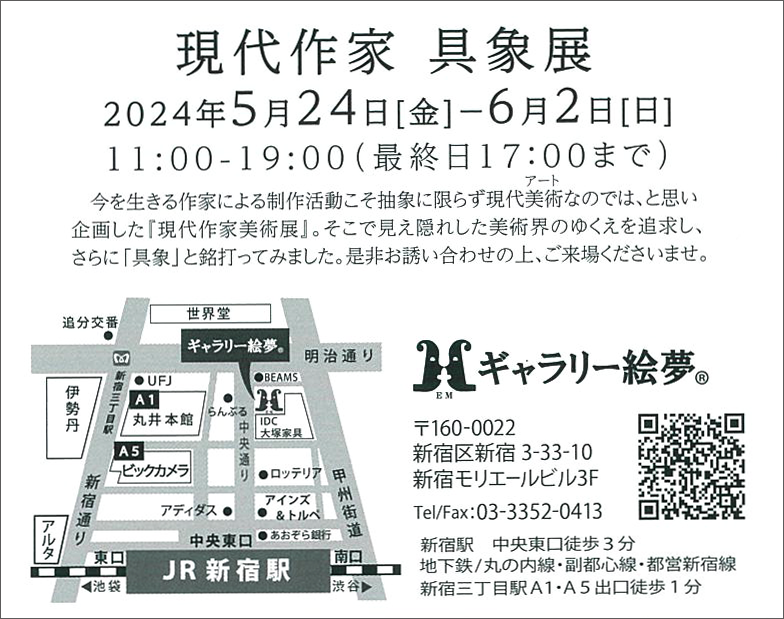【展覧会情報】遊馬賢一・大見伸 グループ展『現代作家 具象展』(ギャラリー絵夢/新宿)