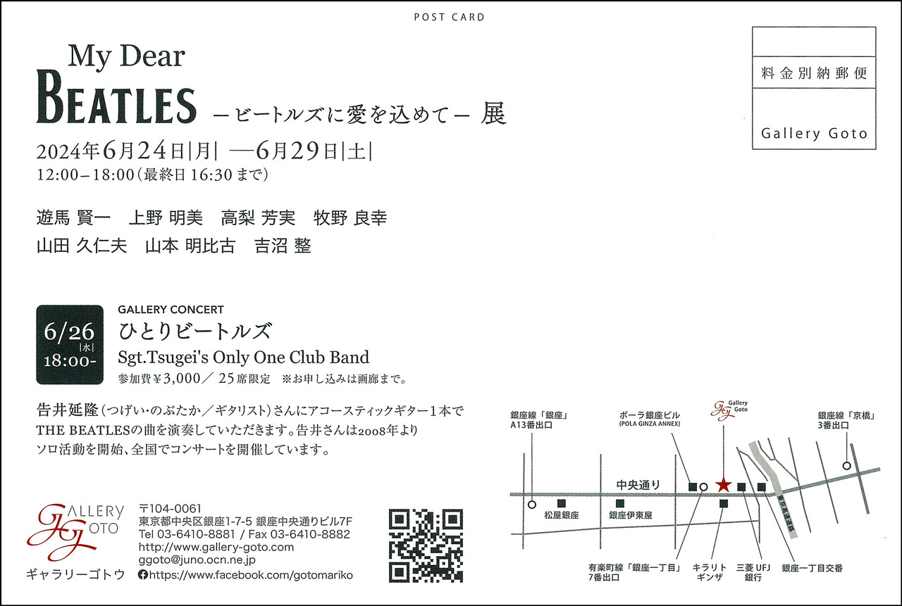 【展覧会情報】遊馬賢一 参加グループ展『My Dear BEATLES —ビートルズに愛を込めて— 展』(ギャラリーゴトウ/銀座)
