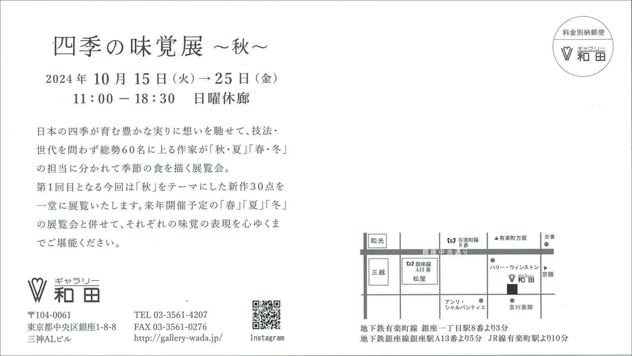【展覧会情報】大見 伸 遊馬賢一 グループ展『四季の味覚展~秋~』(ギャラリー和田/銀座)