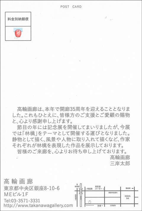 【展覧会情報】遊馬賢一・大見伸 グループ展『開廊35周年記念展【私の林檎】』(高輪画廊/銀座) 6月30日 講師の遊馬先生、大見先生が出品される展覧会をご案内致します。是非ご高覧下さい。開廊35周年記念展 【私の林檎】会 期:2025年7月7日(月)〜7月18日(金)時 間:11:00〜19:00 ※土曜日、日曜日は18:00まで会 場:高輪画廊 〒104-0061 東京都中央区銀座8-10-6 MEビル1F TEL. 03-3571-3331 高輪画廊ホームページ