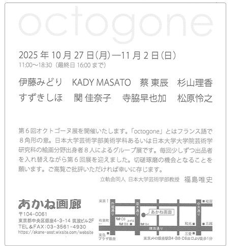 【展覧会情報】関佳奈子 グループ展『octogone』(あかね画廊/銀座)