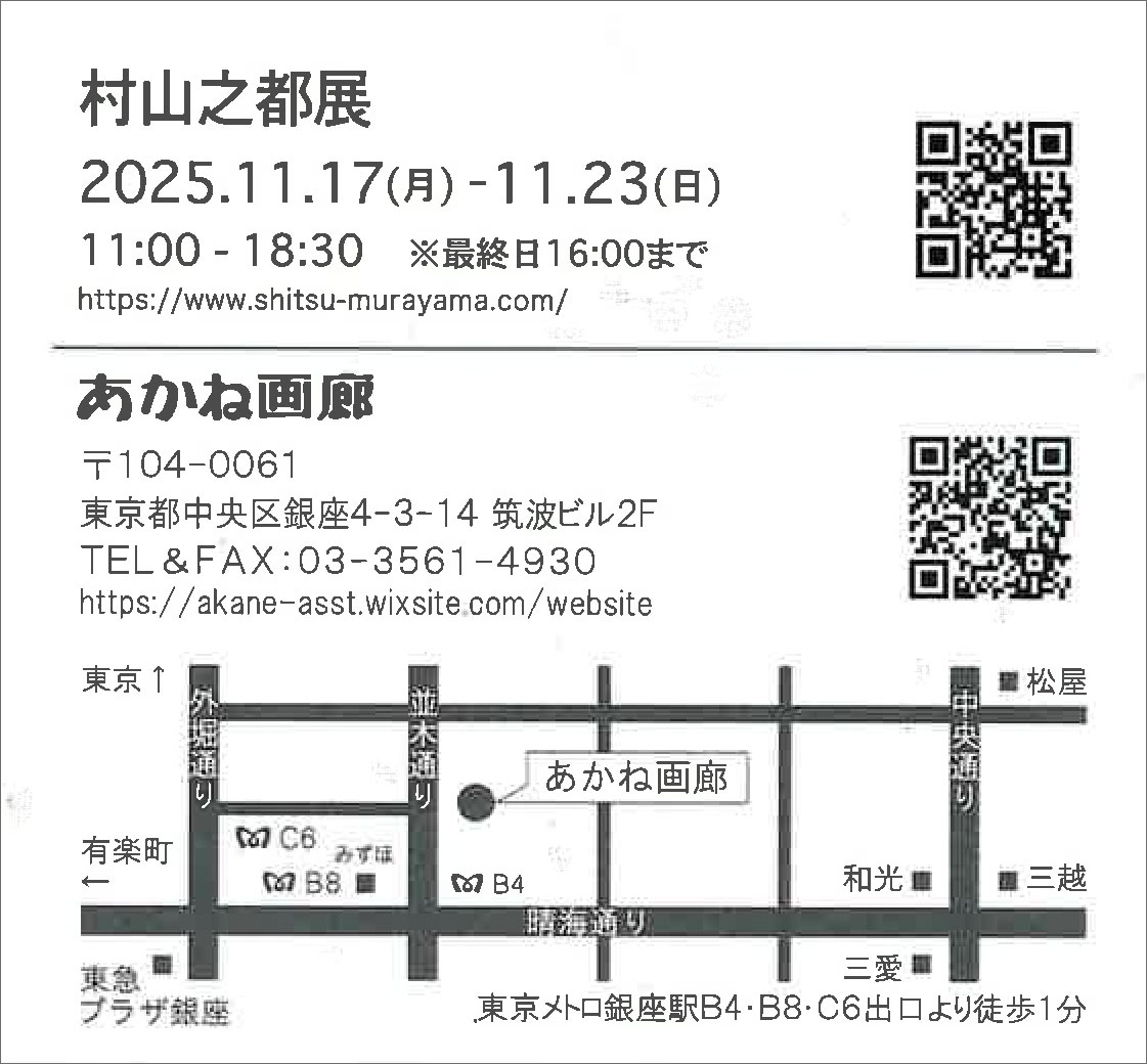講師、村山之都先生による個展のご案内です。