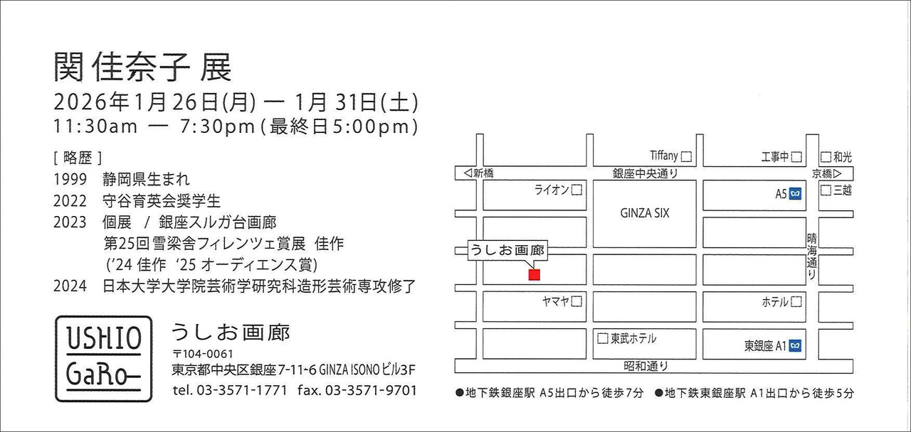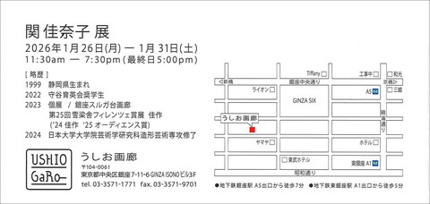 【展覧会情報】関 佳奈子 個展『関 佳奈子 展』(うしお画廊/銀座)