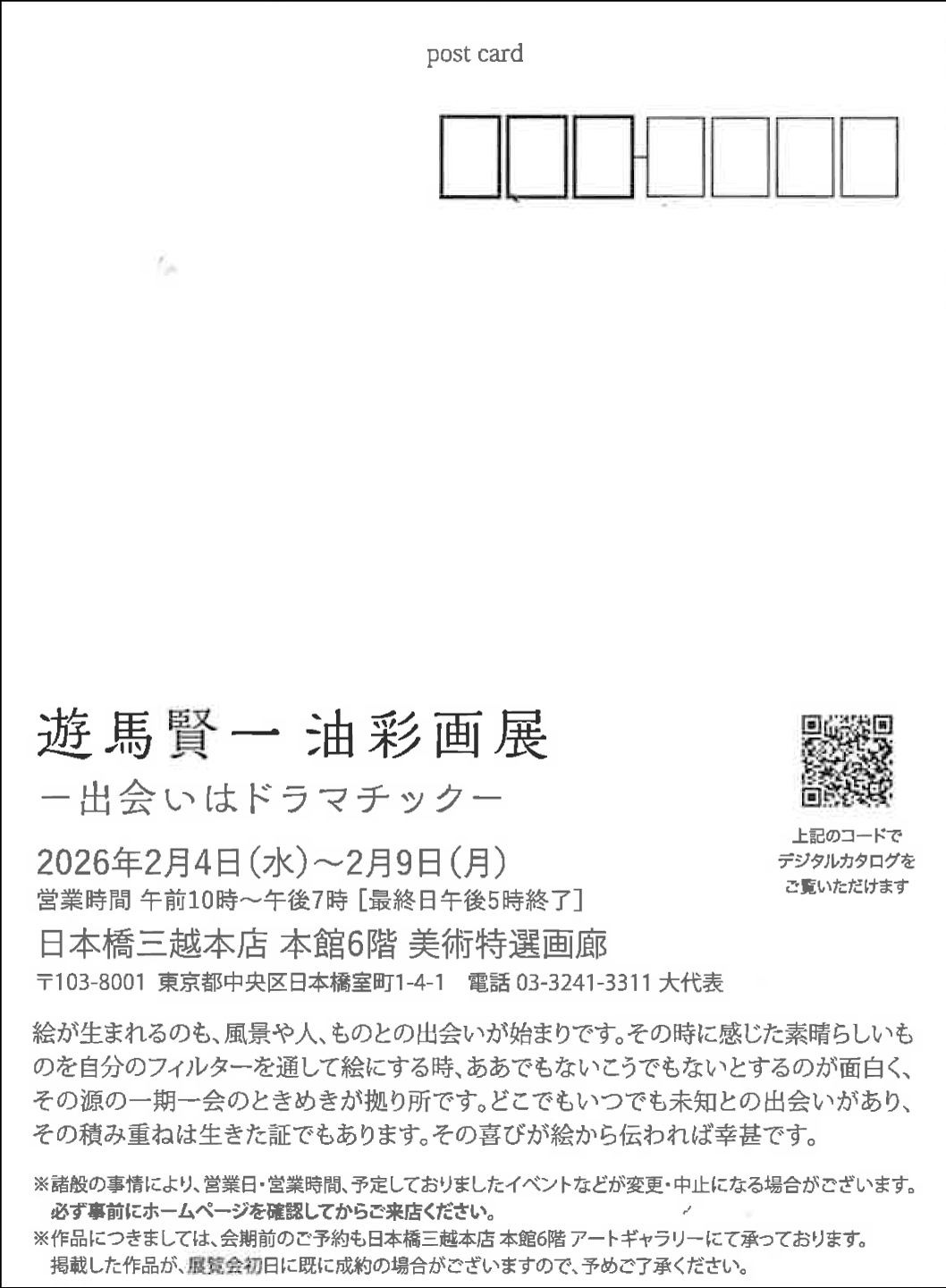 【展覧会情報】遊馬賢一 個展『遊馬賢一油彩画展ー出会いはドラマチックー』(日本橋三越本店/日本橋)