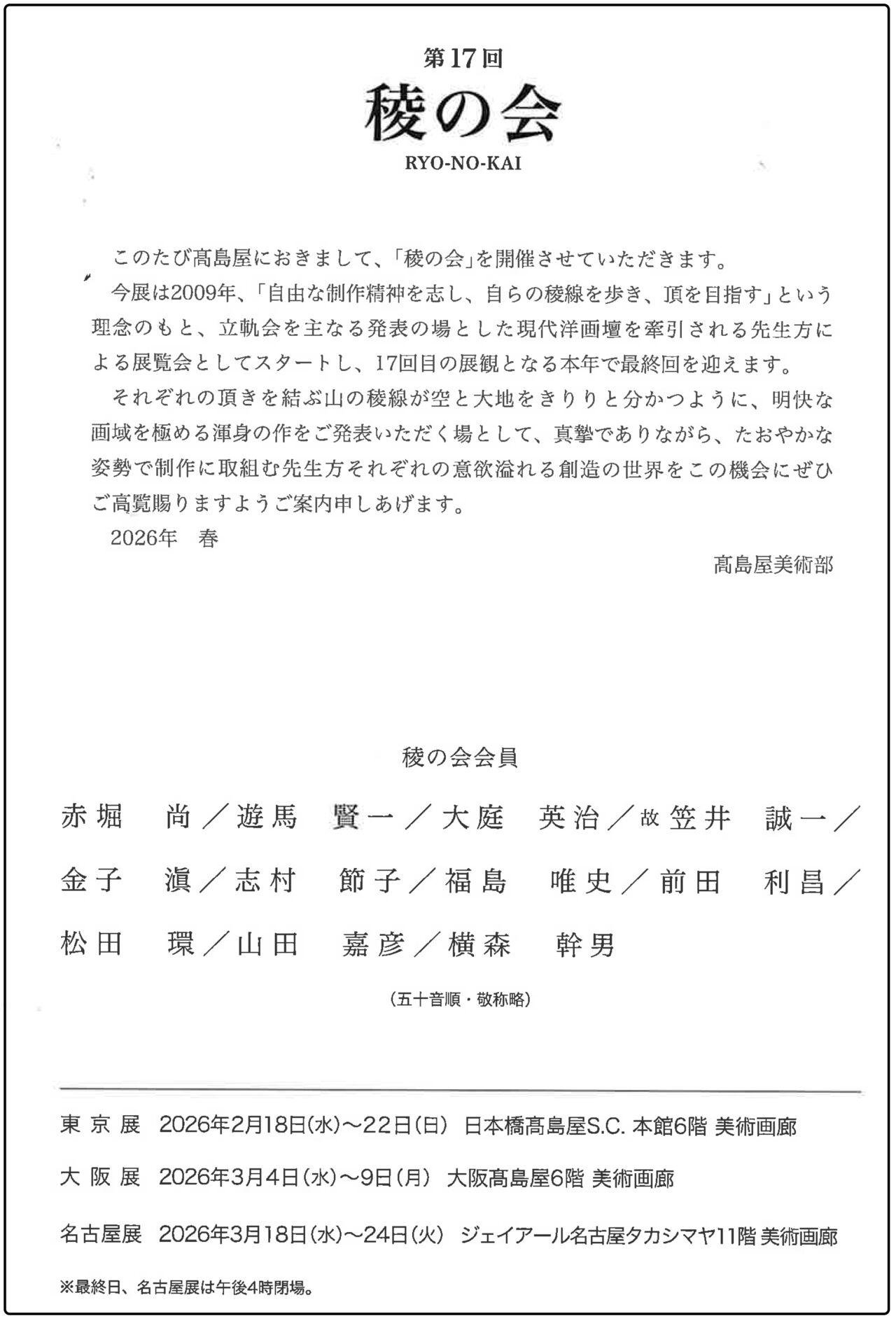 【展覧会情報】遊馬賢一 グループ展『第17回 稜の会』
