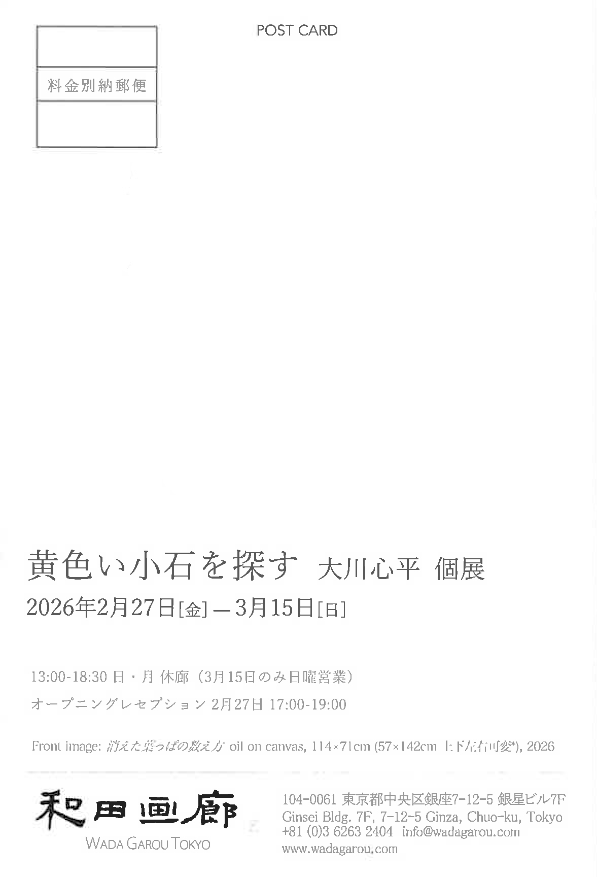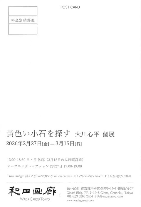 【展覧会情報】大川心平 個展 『黄色い小石を探す』(和田画廊/銀座)