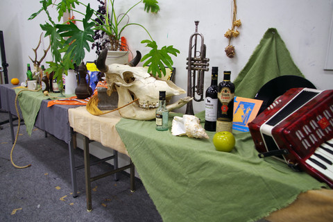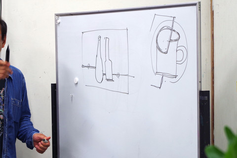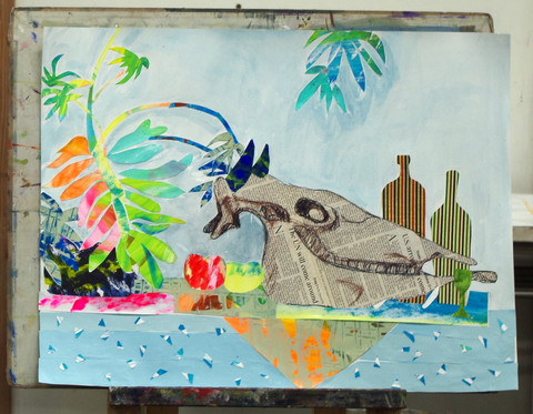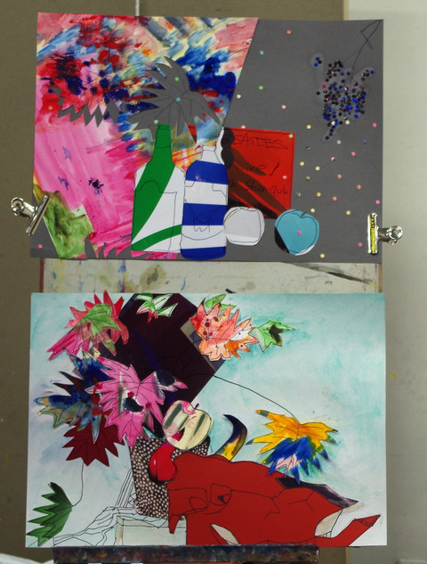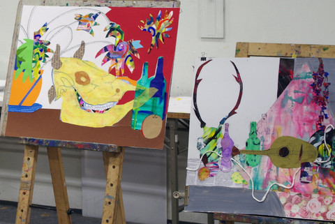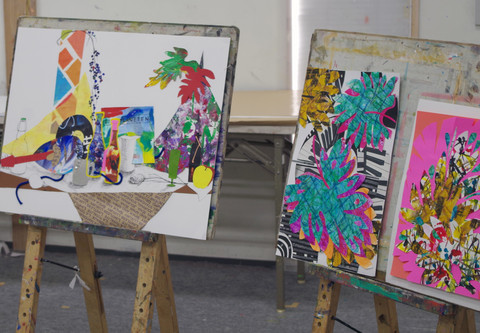 静物モチーフを見てコラージュ作品を制作する授業です。