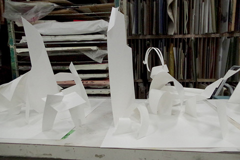1日目は、ケント紙を使用し、立体造形を作りました。