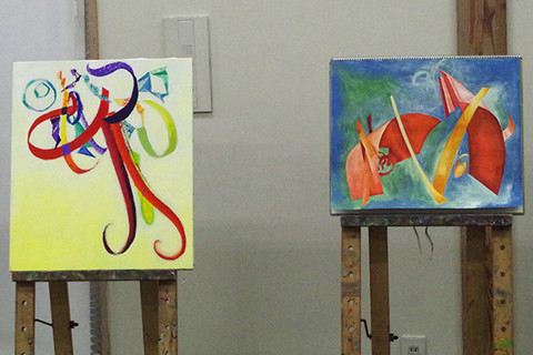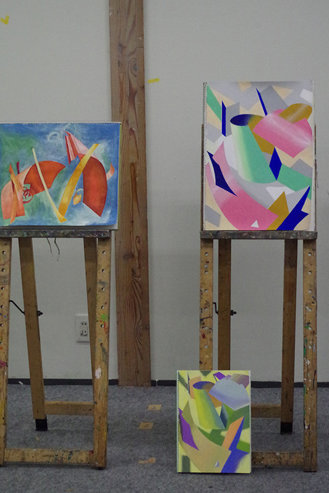 2日目は、それをモチーフとして平面に作画しました。キャンバスや水彩紙など各自好きな画材で描きました。
