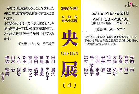 会場:銀座ギャラリームサシ 〒104-0061中央区銀座1-9-1 KIビル1階