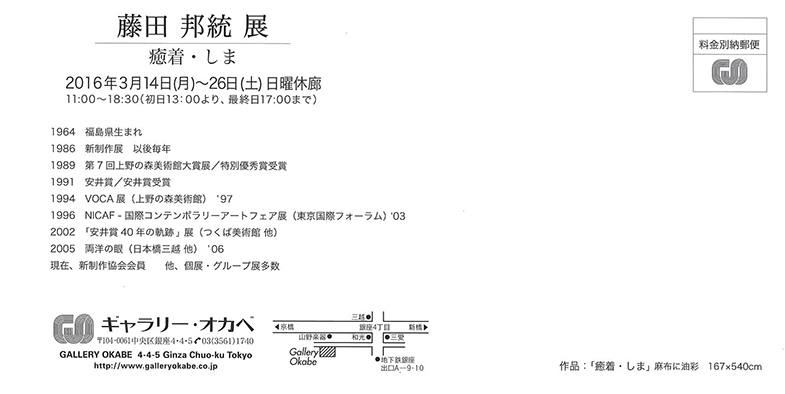 会場:ギャラリーオカベ 〒104-0061中央区銀座4−4−5 Tel.03-3561-1740