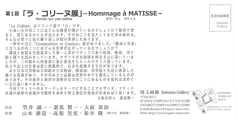 「第1回「ラ・コリーヌ展」-Hommage à MATISSE-」展