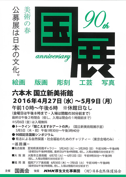 講師、布袋孝雄先生が出品されます国展のご案内をいたします。