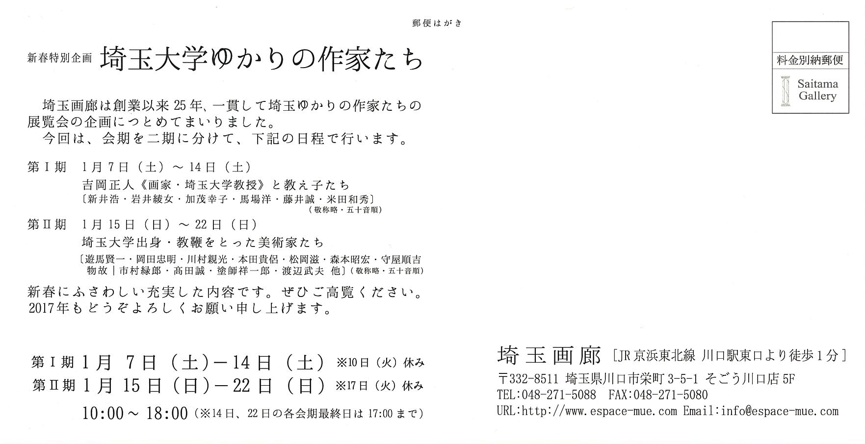 会場:埼玉画廊 〒332-8511 埼玉県川口市栄町3-5-1 そごう川口店5階 Tel.048-271-5088