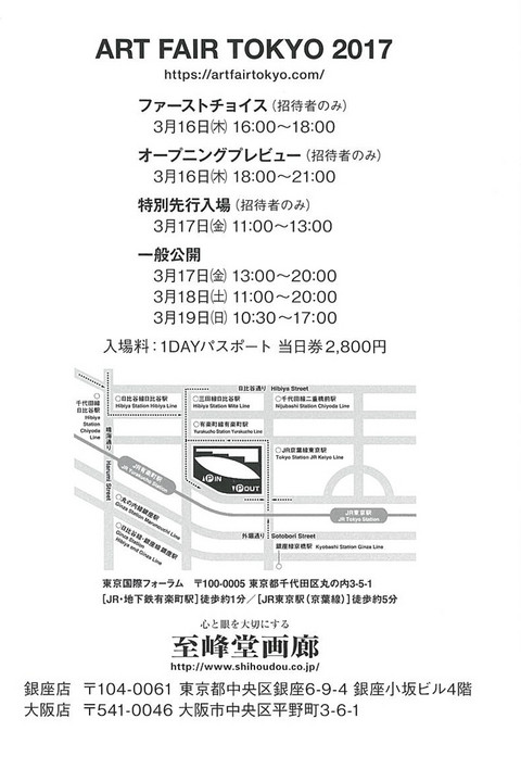 今年もアートフェア東京に出展されます。一般公開は3日間限定。お見逃し無く。