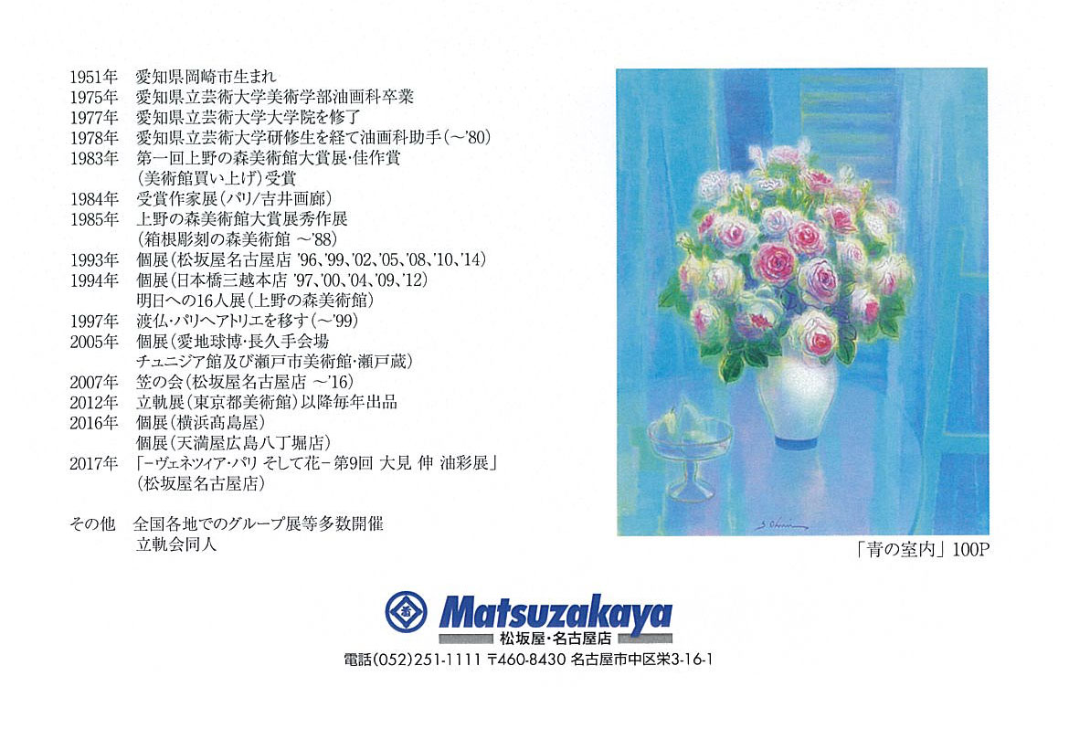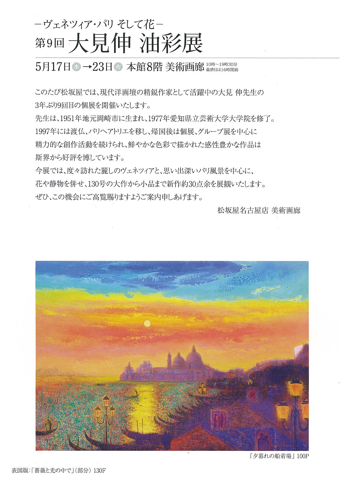 【展覧会情報】大見伸 油彩展 〜ヴェネツィア・パリそして花〜(松坂屋名古屋店)