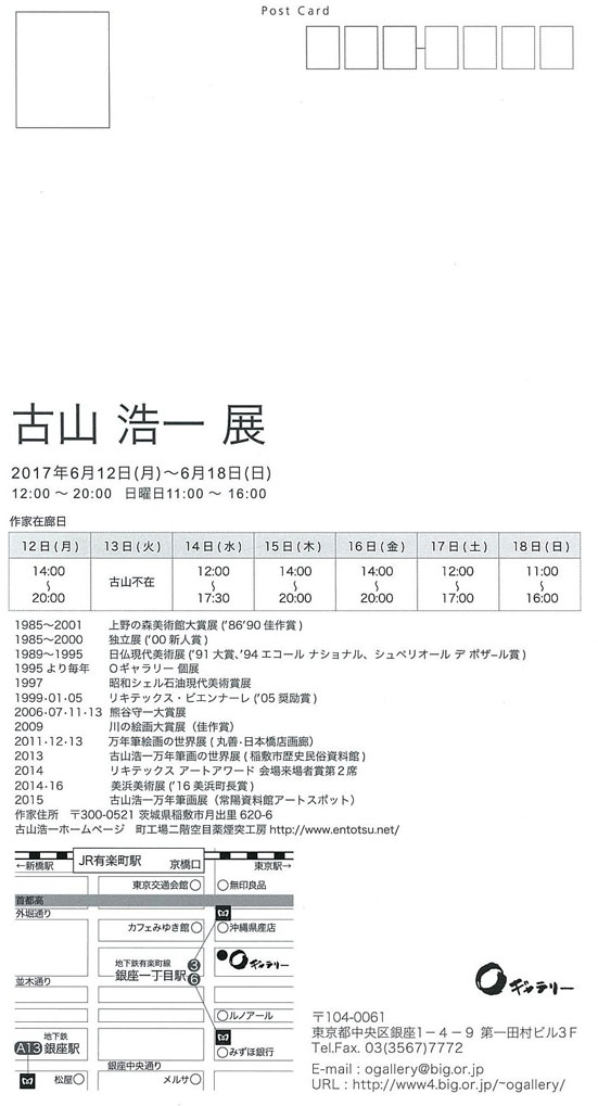 【展覧会情報】古山浩一 個展(銀座 Oギャラリーにて)