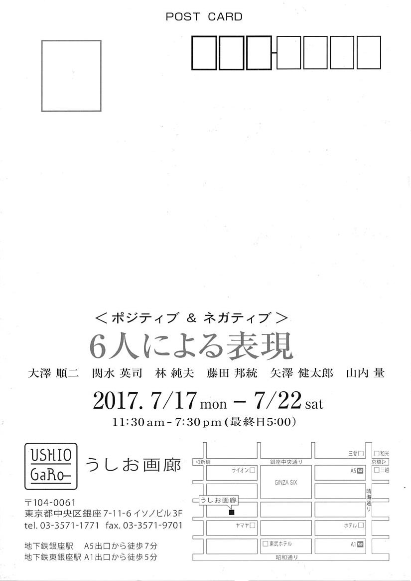 【展覧会情報】藤田邦統「6人による表現」(うしお画廊/銀座) 2017年7月17日 講師、藤田先生が出品される展覧会をご案内致します。是非ご高覧下さい。ポジティブ&ネガティブ6人による表現2017年7月17日(月)〜7月22日(土)AM11:30〜PM7:30(最終日 PM5:00まで)会場:うしお画廊〒104-0061 東京都中央区銀座 7-11-6 イソノビル3階TEL 03-3571-1771 FAX 03-3571-9701