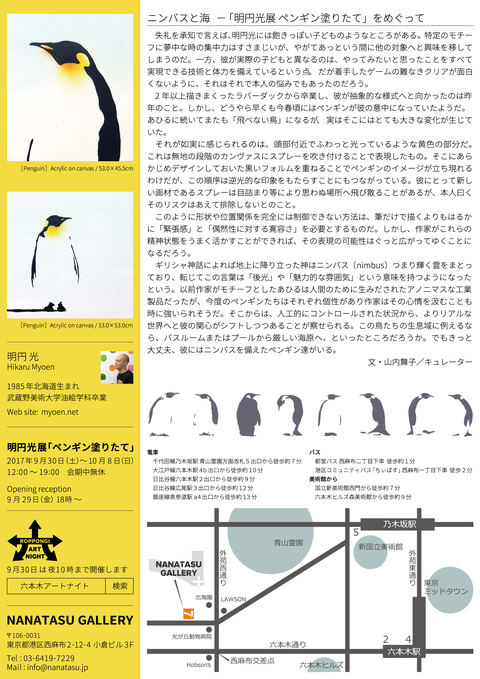 【展覧会情報】明円光 個展「ペンギン塗りたて」(NANATASU GALLERY)
