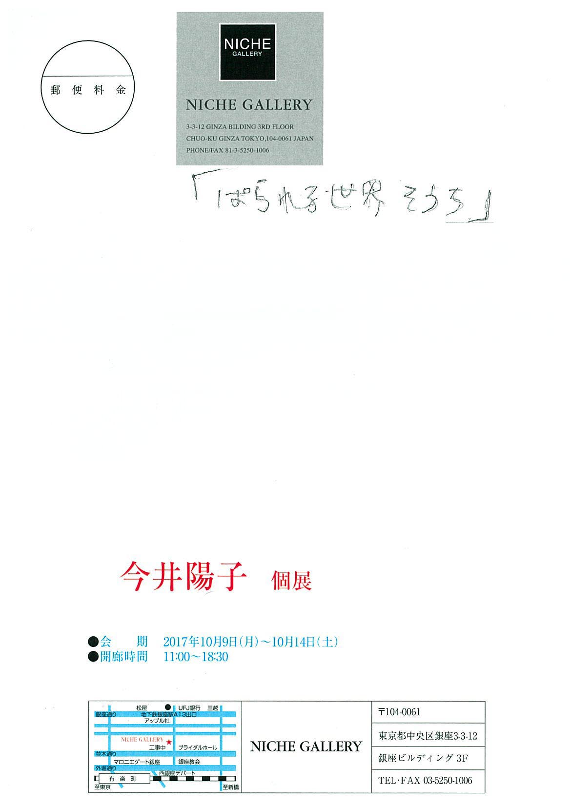【展覧会情報】今井陽子 個展「ぱられる世界そうち」(NICHE GALLERY)