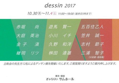 【展覧会情報】遊馬賢一 グループ展『dessin 2017』(銀座・ぎゃらりいサムホール)