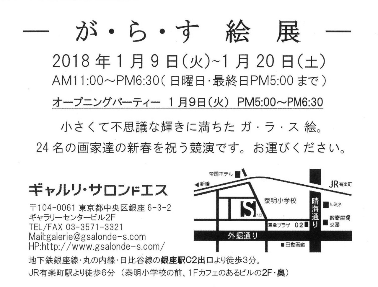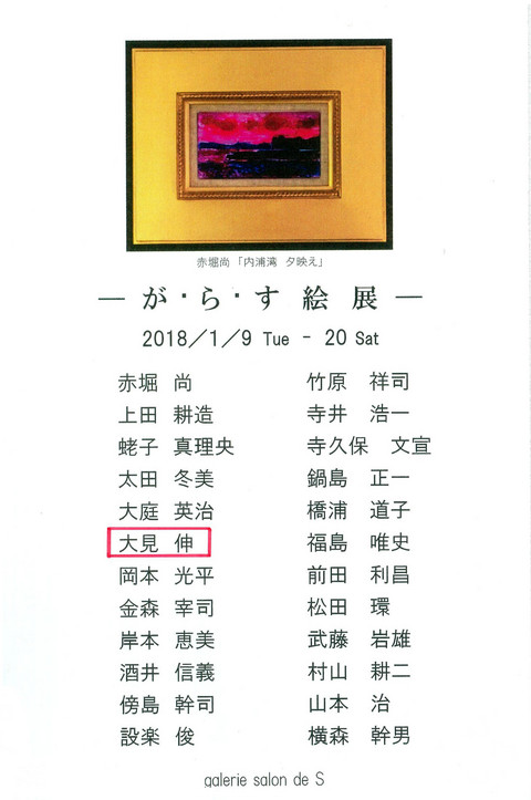 【展覧会情報】大見 伸 グループ展『が・ら・す 絵展』(ギャルリ・サロンドエス/銀座)