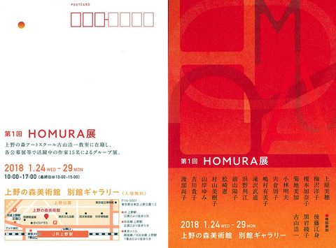 【上野の森美術館ギャラリー】受講生の展覧会「HOMURA展」開催 2018年1月23日 1月24日(水)より上野の森美術館ギャラリーにて、当スクール受講生による展覧会が開催されます。どうぞご高覧ください。「第1回HOMURA展」会期:2018年1月24日(水)〜1月29日(月)時間:10:00〜17:00(最終日15:00迄)会場:上野の森美術館ギャラリー入場無料