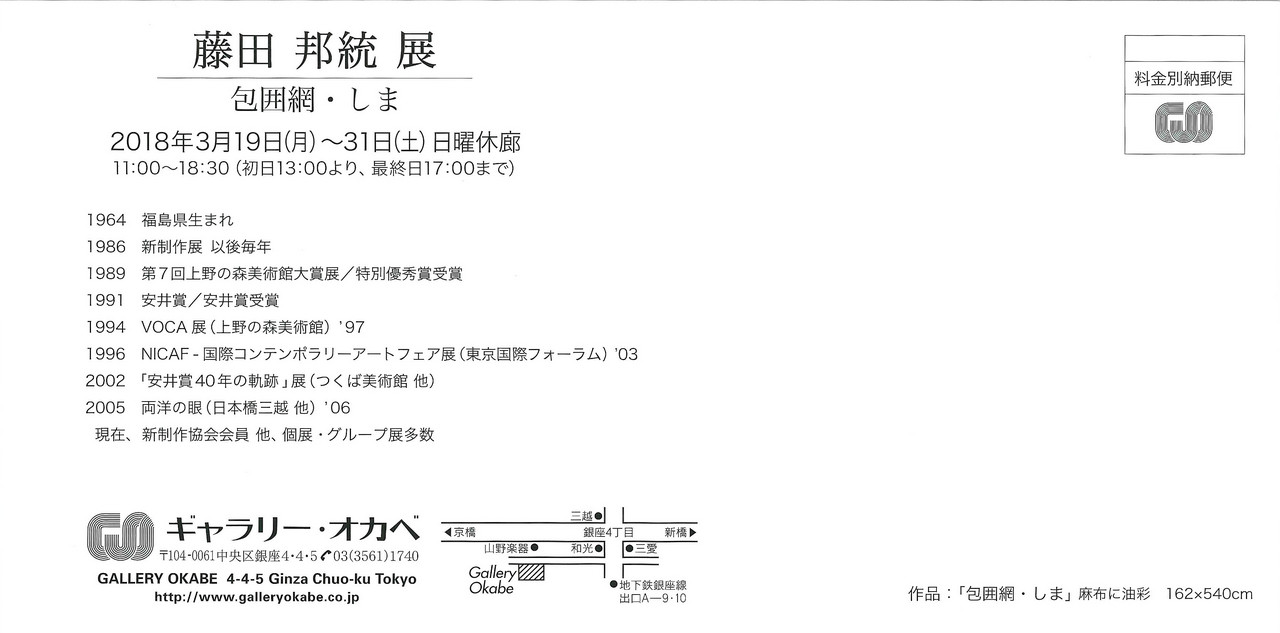 【展覧会情報】藤田邦統 個展(ギャラリーオカベ/銀座)
