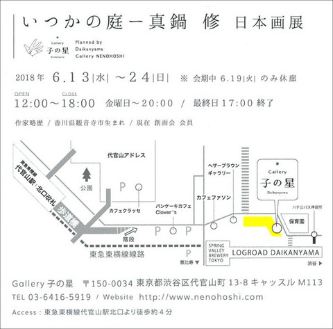 【展覧会情報】真鍋修 個展(Gallery子の星/代官山)
