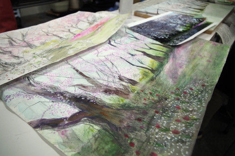 真鍋先生による、以前行われた講座での実演作品。下地に下絵を転写したところ