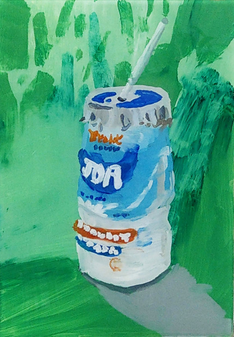 ジョアを描いたガラス絵です。背景は、ガラス絵特有のにじみなどの質感を利用し仕上げていますね。透かして見てみると涼しげになりそうです。モチーフはしっかり塗り、背景は薄くといったコントラストが楽しい作品です。