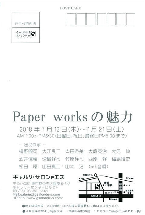 【展覧会情報】大見 伸 個展「Paper worksの魅力」(ギャルリ・サロンドエス/銀座)