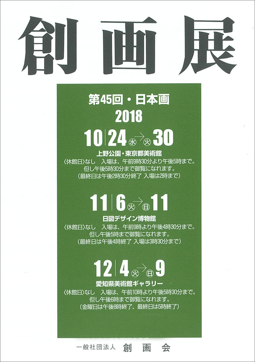 【展覧会情報】真鍋 修『第45回 創画展』(東京都美術館/上野)